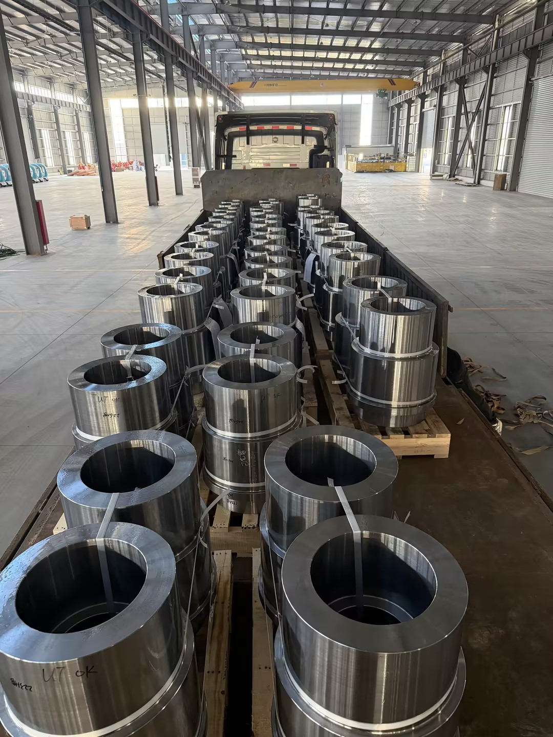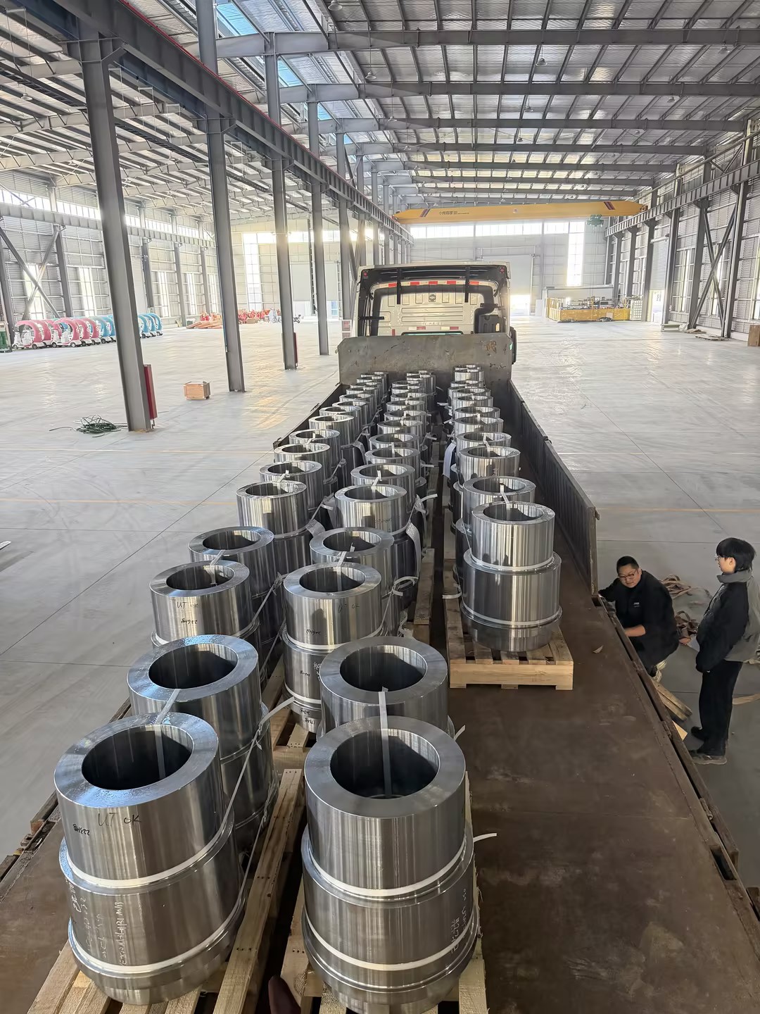 Fertig geschmiedete Ringteile werden verladen und versendet