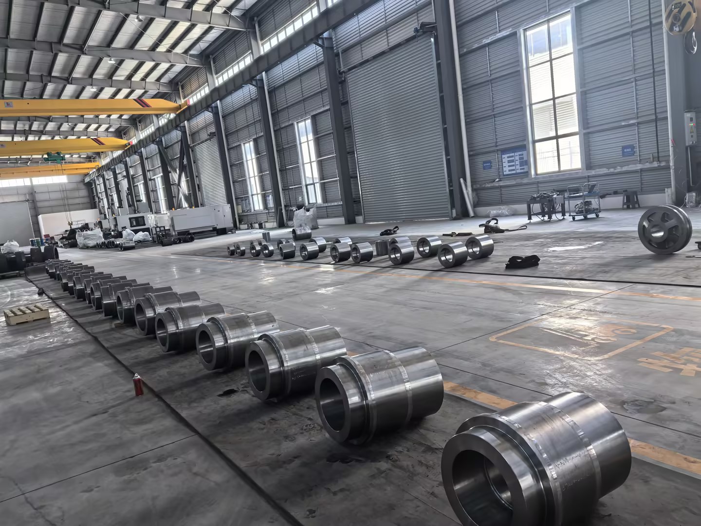 Werkstattproduktionsszene von großformatigen geschmiedeten Ringteilen