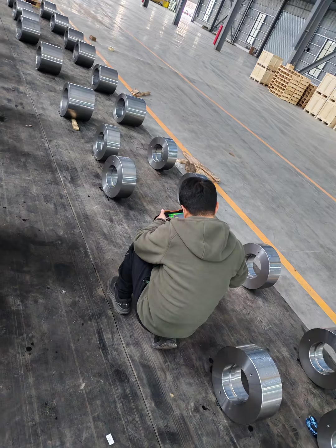 Inspektion der fertigen geschmiedeten Ringprodukte vor Ort beim Kunden